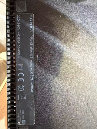 Consola PlayStation 3 modelo CECH-4304C en color negro. Se puede iniciar la PS3 y muestra una pantalla, pero se desconoce su estado.