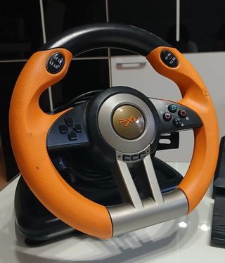 PXN V3 PRO Volante, Volante de 180° con Vibración, Volante para PC, PS3, PS4, Switch, Xbox One, Xbox Series X/S-Naranja Solo tiene algunas marcas en la goma del volante. #volante #pxn #ps4