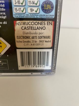 Parte trasera de caja de juego para PlayStation 1 (PS1). Incluye la pegatina de instrucciones en castellano especifica de EA. Venía en los juegos: Diablo, Darkstone, Madden 98, Theme Hospital, Jungla de Cristal, Need For Speed 3