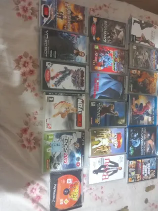 Lote variado de videojuegos para PSP y PlayStation 3, junto con películas. - Videojuegos incluidos: Resistance Retribution, Yo Robot, Tekken 6, Invi-Mals, Dangerous Hunts, Spider-Man 3, Michael Jackson Moonwalker, Grand Theft Auto, NBA 2K9, PES 2013, Smash Cars. - Películas: La Leyenda del Tesoro Perdido, Stealth, y sin volante y lo demás 100 euros