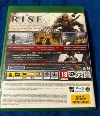 🎮 Assassin’s Creed III – PS3 – Edición en Inglés Vendo Assassin’s Creed III para PlayStation 3, totalmente funcional y en perfecto estado. El juego está en inglés. ⚠️ Importante: La caja es de Xbox 360, ya que la original de PS3 se me rompió. El disco es 100% de PS3 y funciona sin ningún problema. 🗡️ Vive la Revolución Americana con Connor en una de las entregas más épicas de la saga Assassin's Creed III de Ubisoft. ✅ Disco en buen estado ✅ Funciona perfectamente ✅ Ideal para coleccionistas o para disfrutarlo a buen precio Mas jueg - Incluye 60 minutos de gameplay exclusivo. - Clasificación PEGI 18. - No apto para venta separada.