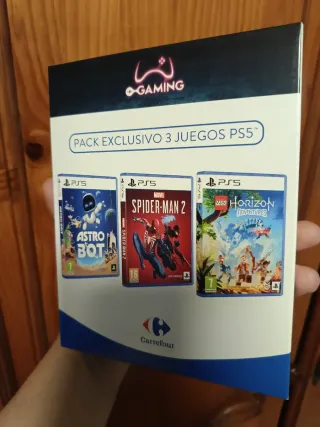 Pack exclusivo de 3 juegos para PlayStation 5 de Carrefour. - Astro Bot - Marvel's Spider-Man 2 - LEGO Horizon Adventures