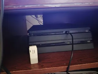 (HA LA CONSOLA LE HE QUITADO LAS PEGATINAS)PlayStation 4 en perfecto estado. Está muy bien cuidada, no ha tenido muchas hora de juego y está muy bien. Como sale en las fotos tiene un mando ( el problema del mando que por el USB de arriba no carga tiene que ser con la estación de carga de abajo, por lo demas todo perfecto ) Tiene un soporte para la consola lleva todos sus cables [ menos HDMI ] Más info al privado Puede incluir otro mando con cable el botón R2 está sueltecillo pero que va bien, también fifa 21 y el FIFA 23 pero sin carcasa y cascos gamer. Opción a vender todo suelto menos los juegos.