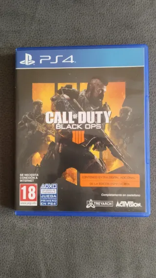 Videojuego Call of Duty: Black Ops 4 para PlayStation 4. Requiere conexión a internet. Contenido extra digital adicional de la edición especialista. Completamente en castellano. Usado. Funciona perfectamente