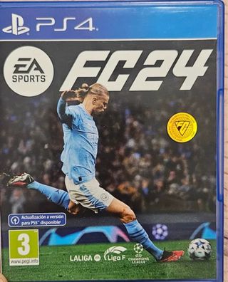 Videojuego de fútbol FC 24 para PlayStation 4. - Cubierta con Erling Haaland. - Incluye actualización a versión para PS5 disponible. - Clasificación PEGI 3.