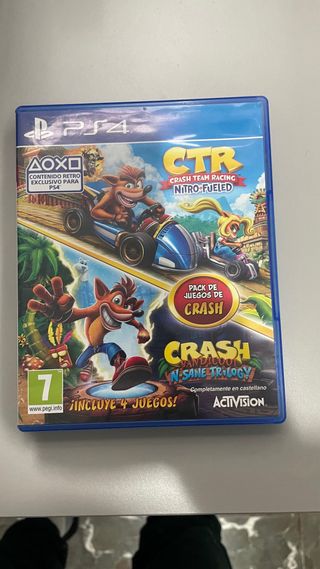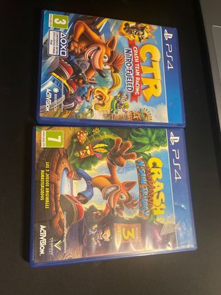 Dos juegos de PlayStation 4. - Crash Team Racing Nitro-Fueled. - Crash Bandicoot N. Sane Trilogy, que incluye los 3 juegos originales remasterizados.