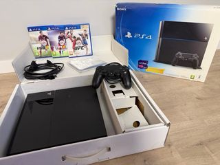 Perfecto estado, sin uso. Consola + mando + FIFA 14, 15, 16 y UFC + cable alimentación y hdmi. Embalaje original.