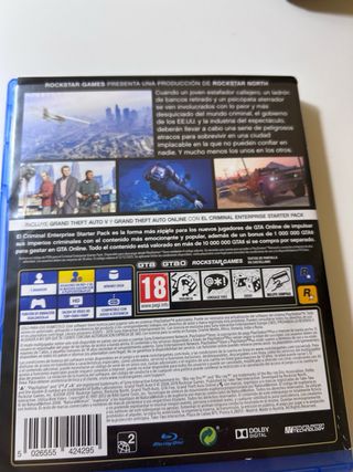 Grand Theft Auto V Premium Edition para PlayStation 4. Edición completa que incluye: Juego original Caja original Manuales completos Mapa del juego Todo en perfecto estado, sin rayones, funciona perfectamente. La Premium Edition incluye el juego completo más Criminal Enterprise Starter Pack. Precio: 15€ Solo envío. Pago seguro a través de Wallapop.