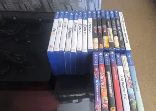 Se vende lote completo de PlayStation 4. Play de capacidad 1 tb - Incluye consola negra. - Dos mandos DualShock 4 negros - PlayStation VR con cables y caja. - Caja original con cables y accesorios. - Juegos incluidos: FIFA 25, FC 24, FIFA 208, Minecraft, Just Dance, Sing 12, Sing 13, Supercod Arena, Valkyrie Elysium, Hotel Transylvania, y más títulos