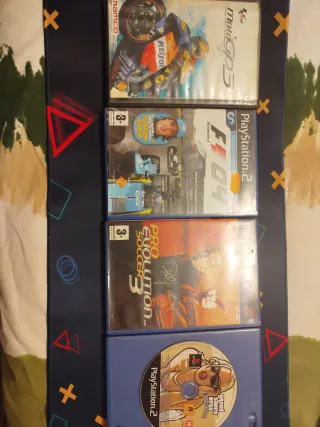 Pack de cuatro juegos para PlayStation 2 a pesar de su edad funcionan bien, tienen uso se entregan tal cual las fotos, se vende el pack completo. - MotoGP 3 - Formula 1 04 - Pro Evolution Soccer 3 - Grand Theft Auto: San Andreas