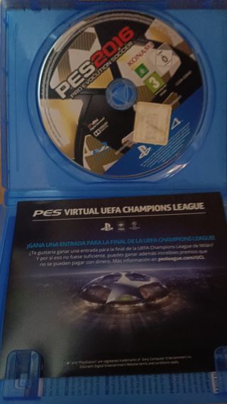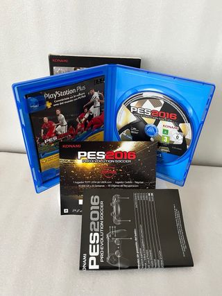 Videojuego Pro Evolution Soccer 2016 para PlayStation 4, edición limitada. - Incluye funda con caratula del juego para la caja. - Incluye manual original de instrucciones y contenido extra. ( No se si estara escaneado )