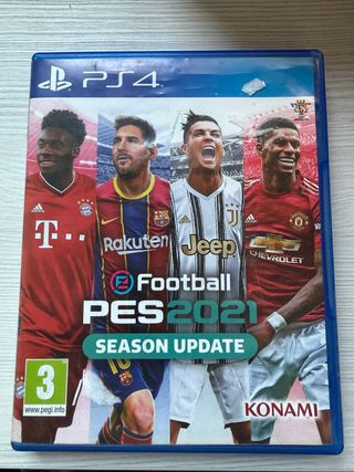 Videojuego de fútbol para PlayStation 4. - Edición PES 2021 Season Update. - Incluye a jugadores como Messi, Cristiano Ronaldo y Rashford. - Clasificación PEGI 3.