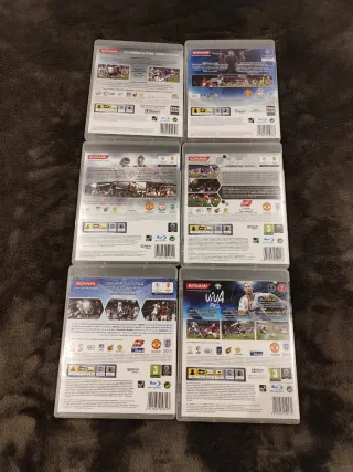 Por separado 4€ cada juego: -Pro Evolution Soccer 2008. -Pro Evolution Soccer 2009. -Pro Evolution Soccer 2010. -Pro Evolution Soccer 2011. -Pro Evolution Soccer 2012. -Pro Evolution Soccer 2013. -No Negociable -No me desplazo para las ventas.