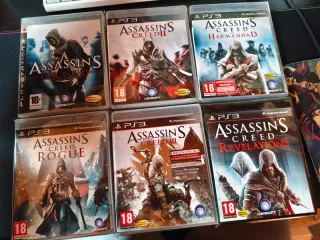 Assassins creed 1 PS3 Pal Esp 🇪🇸, completo, en muy buen estado. Assassins creed 2 PS3 Pal Esp 🇪🇸, completo, en muy buen estado. Assassins creed La hermandad PS3 Pal Esp 🇪🇸, completo, en muy buen estado. Assassins creed Revelation PS3 Pal Esp 🇪🇸, completo, en muy buen estado. Assassins creed 3 PS3 Pal Esp 🇪🇸, completo, en muy buen estado. Assassins creed Rogue PS3 Pal Esp 🇪🇸, completo, en muy buen estado. Precio por el lote. No leer: Sekiro , lote , pack , play , juegos , PS3, PS2, PSP, PS4 , PS5, rockstar games, vintage,coleccionismo, naughty dog, spiderman, Los Simpsons: Hit and Run.