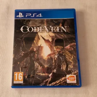 Videojuego Code Vein para Playstation 4 y Playstation 5 publicado por Bandai Namco (Dragon Ball, Naruto, Dark Pictures, Dark Souls, etc.). Juego RPG de acción tipo souls (Sekiro o Elden Ring) de esteica anime post apocaliptica. La historia sigue al protagonista, un Resucitado amnésico, mientras explora la ciudad de Vein con compañeros para descubrir su pasado.