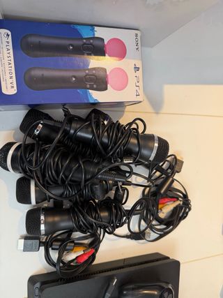 Consola PlayStation 4 en color negro, ideal para disfrutar de tus juegos favoritos. Incluye todo lo que se ve en las fotos, mandos, juegos, realidad virtual... No se vende por separado ni me interesa cambiarlo por nada. No se hace envios