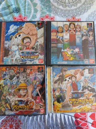 Lote de cuatro videojuegos de One Piece para PlayStation 1, de importación japonesa. - One Piece: Grand Battle! - One Piece: Grand Battle! 2 - One Piece: TV - One Piece: Lote formado por 4 juegos de one piece. En muy buen estado, todos con sus libritos de instrucciones. Los juegos están en formato japonés (necesitas la consola Japonesa para poder reproducirla).