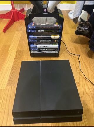 playstation 4 + 2 mandos + estación de carga de mandos + soporte de juegos + 6 juegos