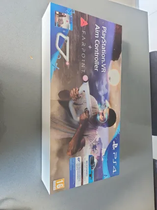 Pack de PlayStation VR con el juego Farpoint y el Aim Controller. Nueva completamente, no se ha abierto nunca. - Incluye el juego Farpoint para PS4. - Mando Aim Controller para experiencias de RV inmersivas. - También es compatible con la consola PS5, siempre que se utilice la VR de PS4.