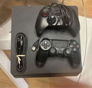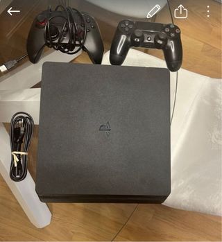 Consola PlayStation 4 en color negro con cables, ideal para disfrutar de tus juegos favoritos. Incluye un mando.Tambien conservo la caja - Consola PlayStation 4. - Un mando inalámbrico.