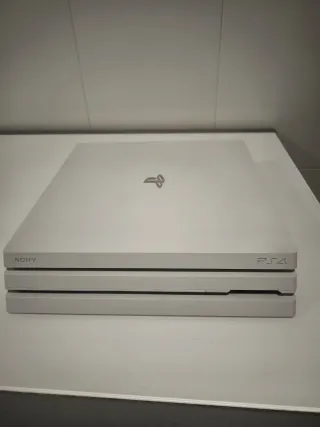 Consola PlayStation 4 Pro con acabado en color blanco y 1TB de almacenamiento. - Incluye 2 mandos - Diseño elegante y moderno. - Capacidad de 1TB para juegos y contenido.