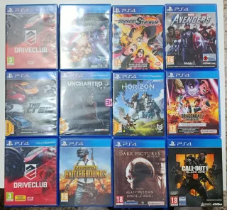 Lote de videojuegos para PS4 (PlayStation 4). - Driveclub - Star Wars: Battlefront - Naruto Shippuden: Ultimate Ninja Storm Trilogy - Marvel's Avengers - The Crew - Uncharted: El Legado Perdido - Horizon Zero Dawn - Dragon Ball: The Breakers - PlayerUnknown's Battlegrounds - The Dark Pictures Anthology: Man of Medan - Call of Duty: Black Ops 4