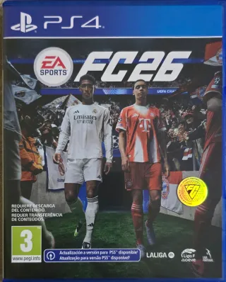 Videojuego FC 26 para PlayStation 4. Solo le quité el plástico, tengo 2 códigos DLC para canjear en PlayStation store.Aceptaría cambiarlo por unos galaxy buds 3 pro, más diferencia. - Género deportivo. - Requiere descarga de contenido y transferencia de datos.