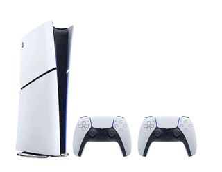 Se vende consola PlayStation 5 junto con dos mandos DualSense. - Diseño moderno en blanco y negro. - Incluye dos mandos para multijugador.