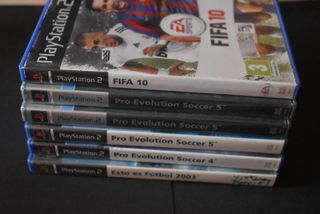 Pack de cinco videojuegos de fútbol para PlayStation 2. Hay alguno con el disco un poco rallado pero funcionan, uno tiene pintado el plástico de la caja, la portada esta bien, mire las fotografías. Más videojuegos y artículos interesantes en mi perfil - FIFA 10 - Pro Evolution Soccer 5 (x3) - Pro Evolution Soccer 4 - Esto es Fútbol 2003