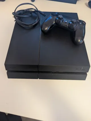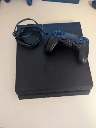 PS4(PlayStation 4)Sony Negra con un mando y juegos