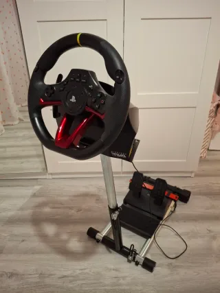 Volante de carreras inalambrico Thrustmaster para PS4 con pedales. Esta en perfecto estado. Incluye soporte regulable en posición y altura, tambien se pliega. - Diseño deportivo con detalles en rojo. - Volante con acabado texturizado para mejor agarre. - Incluye base de pedales.