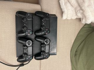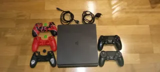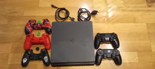Consola PlayStation 4 Slim en color negro. -En buen estado - Modelo Slim. - Marca Sony. -2 mandos no inalambricos -4 videojuegos
