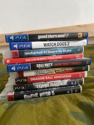 Lote de videojuegos para PlayStation 4, PlayStation 3 y Nintendo Switch. - Uncharted: El Tesoro de Drake (PS3) - Grand Theft Auto V (PS4) - Call of Duty: Black Ops III (PS4) - Watch Dogs 2 (PS4) - Dragon Ball Xenoverse (PS3) - Guitar Hero World Tour (PS3) - Guitar Hero 5 (PS3) - Gear Club Unlimited 2 Tracks Edition (Nintendo Switch)