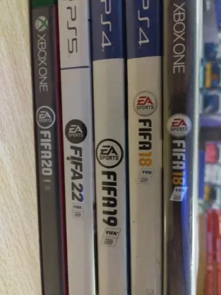 Lote de 5 videojuegos de la saga FIFA para consolas Xbox One y PlayStation 4. - FIFA 20 (Xbox One) - FIFA 22 (PS5) - FIFA 19 (PS4) - FIFA 18 (PS4) - FIFA 18 (Xbox One) precintado