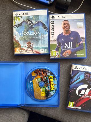 Lote de videojuegos para PlayStation 4 y PlayStation 5. - Horizon Forbidden West (PS5) - FIFA 22 (PS5) - Gran Turismo 7 (PS5) - Crash Bandicoot N. Sane Trilogy (PS4)