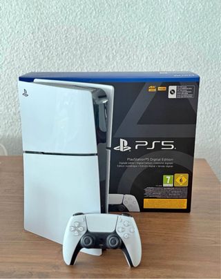 Console Playstation 5 in color white, includes one controller and four virtual games. - Console Playstation 5 Slim - 1 Controller - 4 Virtual Games