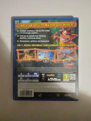 Juego Crash Bandicoot N. Sane Trilogy para PlayStation 4. - Incluye los 3 juegos originales remasterizados. - Completamente en castellano. - Clasificación PEGI 7.