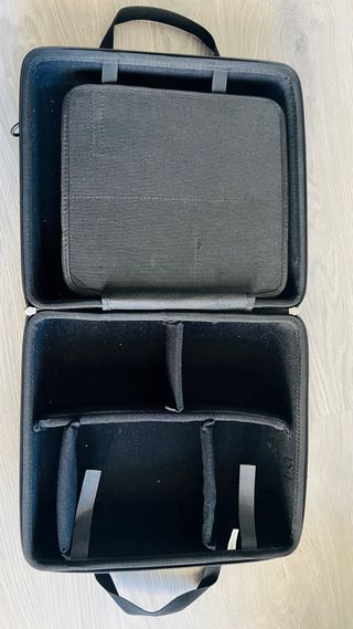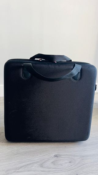 Estuche negro para consola PS4. Es resistente y protege tu equipo. - Material exterior fuerte y duradero. - Asa de transporte. - Cierre de cremallera.