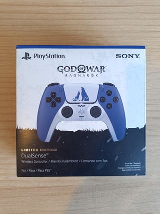 Se vende mando inalámbrico DualSense de edición limitada para PS5, inspirado en God of War Ragnarök. Presenta un diseño en azul y blanco con motivos del juego , nuevo precintado. - Diseño exclusivo God of War Ragnarök. - Compatible con PS5. - Mando inalámbrico.
