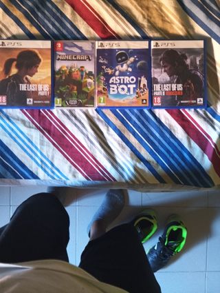 Pack de videojuegos para PlayStation 5 y Nintendo Switch. - The Last of Us Parte I PS5 (30€) - Minecraft Switch (20€) - Astro Bot PS5 (35€) - The Last of Us Parte II Remastered PS5 (30€) -Mando inalámbrico gilikit King Kong 2 pro (20€) Precio Negociable.