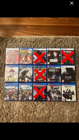 Vendo lote de juegazos de Ps4 y Ps5. Todos en perfectas condiciones listos para disfrutar!! Hay precintados sin estrenar!! Podéis hacer ofertas! Si están marcados con emoticono (❌) significa que están vendidos. 🎮 Juegos de PS5 - Assassin's Creed Shadows (precintado): 35€ - The last of Us II Remastered: 35€ ❌ - Resident Evil Village: 30€ - Cronos: 40€ - FC 26 (precintado): 49€ ❌ 🎮 Juegos de PS4 - Far Cry 4: 10€ - Far Cry 5: 12€ - Far Cry 6: 20€ ❌ - The Last of Us I Remastered: 15€ ❌ - FIFA 15: 10€ - Hunt Showdown: 12€ - Watch Dogs: 10€ - Grand Theft Auto V: 15€ ❌ - Resident Evil Biohazard: 25€ - Outlast Tri: 40€