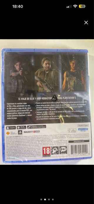 Juego en perfecto estado. Incluye el disco del juego The Last of Us Parte II Remastered para PS5. - Caja en excelentes condiciones.