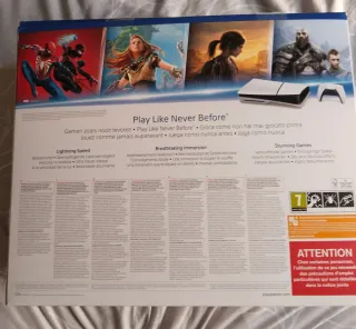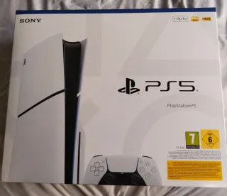 Caja original para consola PlayStation 5. - Incluye la caja exterior. - Diseño blanco y negro característico de PS5.