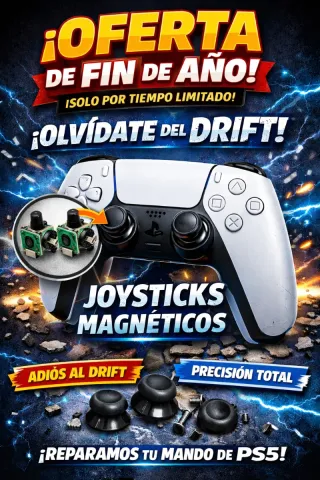 Servicio de cambio de joysticks a magnéticos para mandos de PS5 en Alcorcón. Mejora la precisión y olvídate del drift. Más de 50 reseñas todas con 5 estrellas 💫 💫 Reparaciónes en el mismo día Llévate tú mando en 1 hora totalmente funcional - Instalación de joysticks magnéticos. - Reparación de drift en mandos de PS5. - Oferta especial de fin de año por tiempo limitado.