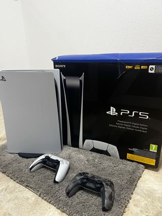 Consola PlayStation 5 Edición Digital. - Color blanco y negro. - Incluye dos mandos, uno blanco y otro de camuflaje. - Esta en muy buen estado , funciona perfectamente para más información al privado