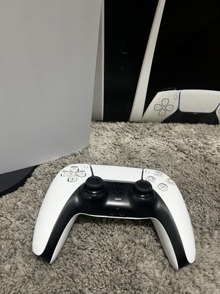 Usado solo dos veces. Se vende consola PlayStation 5 junto con dos mandos. - Consola en color blanco y negro. - Un mando en color negro. - Un mando en color blanco y negro.