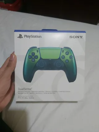 Mando inalámbrico DualSense para PlayStation 5 con un diseño verde iridiscente. - Compatible con PS5, PC, Mac y dispositivos móviles. - Diseño ergonómico para mayor comodidad.