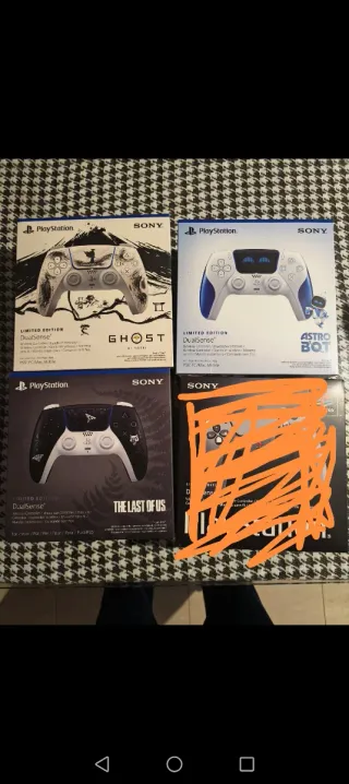 Se venden mandos DualSense para PlayStation 5 en ediciones limitadas. Todos nuevos y precintados 95 astro 110 tlou 130 yotei - Mando DualSense Edición Limitada Ghost of Tsushima. - Mando DualSense Edición Limitada Astro Bot. - Mando DualSense Edición Limitada The Last of Us.