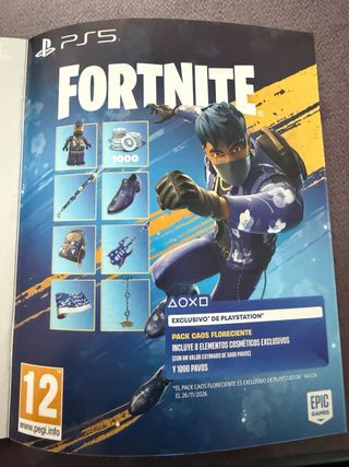 Pack exclusivo de PlayStation para Fortnite. - Incluye 8 elementos cosméticos exclusivos. (Valorado en 5.000 pavos) - Contiene 1000 Pavos.