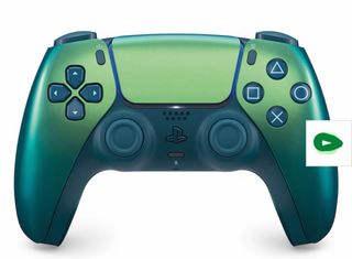 Mando inalámbrico para PlayStation 5 con un diseño degradado en tonos verdes y azules. - Acabado metálico brillante. - Botones y sticks en azul oscuro. Con su factura y sin abrir